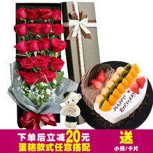 中帝(ZHONG DI) 生日蛋糕同城配送 鲜花速递蛋糕组合北京上海广州深圳成都武汉南京 19枝红玫瑰礼盒8寸水果蛋糕 8寸