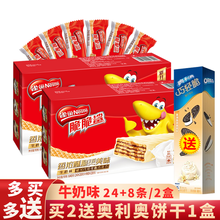 雀巢(Nestle) 饼干脆脆鲨花生牛奶巧克力味威化夹心饼干32条640g盒办公室休闲零食 牛奶味*2盒