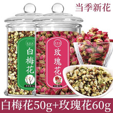 玫瑰花与白梅花茶组合梅花干花红梅花腊梅花茶女性泡水喝的茶可泡茶煮茶白玫花 特级白梅花50g+特级玫瑰花60g【各1罐】无硫新花,严格采摘,品质保证,支持试喝,收到不满意包邮退回,拆用可退