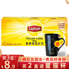 立顿红茶(Lipton)茶叶绿茶茉莉花茶乌龙茶英式早餐红茶冲饮袋泡茶包办公室休闲下午茶 【买2送星座杯】黄牌红茶25包