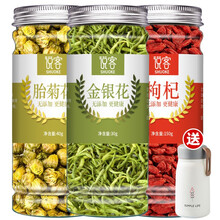 7罐菊花枸杞决明子茶金银花牛蒡根搭蒲公英茶包男女茶熬夜茶饮品肝养花茶组合养生茶茶叶 3罐+杯【胎菊花40g+金银花30g+枸杞150g