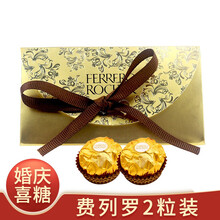 京东国际 费列罗(FERRERO)巧克力2粒装金色礼盒喜糖结婚生日婚礼婚庆随手礼费列罗定制包装棒果牛奶巧克力 建议15的倍数购买,喜糖盒为平板发货温馨提示:由于天气炎热,巧克力比较娇贵,收货后放冰箱里面冷藏几个小时后在拿出来会比较好一点!请根据当地天气情况慎重购买,巧克力融化我们是不退不换,敬请谅解!