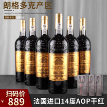 法国进口AOP级 金标干红 葡萄酒 14度红酒 红酒礼盒装 干红葡萄酒750ML*6 红酒整箱法国进口,14度干红葡萄酒,制造浪漫有时只需一杯红酒