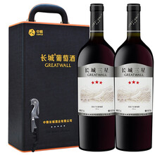 长城(GreatWall)红酒/白葡萄酒 长城三星 中粮长城葡萄酒 长城三星葡萄酒(长城五星副牌) 三星美乐干红750ml*2瓶 红酒礼盒