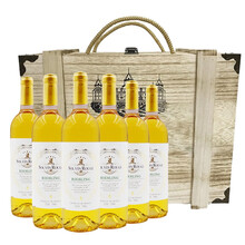 情人过年节日送礼红酒礼盒 法国原酒进口六瓶 精选雷司令干白葡萄酒6支装整箱 甜白6支+豪华大木箱+海马刀