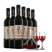 张裕干红葡萄酒旗舰官方店酿酒师三星推荐解百纳红酒橡木桶赤霞珠整箱6支装张裕官方授权旗舰店 六支酒 +醒酒器+2酒杯+刀