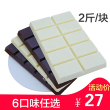 烘焙巧克力1kg黑白砖块超大块大板散装大板块原料代可可脂 严选黑巧克力2斤