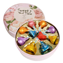 好时(Hershey’s)好时之吻kisses好时牛奶巧克力6粒10粒16粒圆形铁盒结婚喜糖礼盒装 10粒(粉色铁盒)