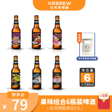 优布劳 国产原浆啤酒 精酿小麦水果风味啤酒瓶装 混合口味系列 6种口味混合330ml*6瓶【官方旗舰店】正品保障,日期新鲜,破损包赔,假一罚万!【店铺活动】满59-10,99-20,199-50。部分商品下单可送精酿杯,详情见商品主图~