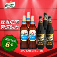 【乌苏啤酒旗舰店】乌苏啤酒(wusu) 新疆WUSU 黑啤白啤12瓶6瓶夺瓶装整箱破损包赔多规格 黑啤620ml*3瓶+小麦白465ml*3瓶