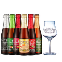 【6+1套装】比利时进口林德曼Lindemans 水果味组合随机6瓶啤酒+林德曼原装高脚杯*1