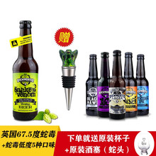 布瑞美斯特蛇毒啤酒 英国原装进口高度烈性精酿啤酒组合330ml瓶装 英国67.5度蛇毒+低度5瓶【赠1 专用杯 】