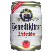 德国Benediktiner百帝王小麦白啤酒桶装5L大容量进口啤酒整箱特价 到21年10月5升装*1桶