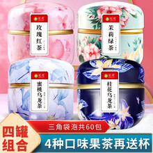 【发4罐共60泡+杯】水果茶组合 桂花乌龙茶茉莉花茶蜜桃乌龙茶玫瑰红茶包精致三角袋泡茗愿茶叶 【精致铁罐4种口味】【共60泡+花茶杯】【全国八仓发货,京东物流极速达】 【实发4罐共60泡再送杯】【精致铁罐,三角袋泡】 【支持30天价保,30天无条件退货,送运费险,售后无忧】