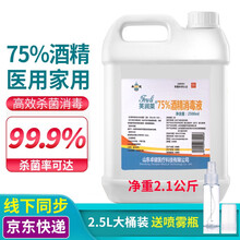 芙润莱 大桶酒精75%度95%度医用酒精乙醇消毒液2L 高浓度纯火疗拔罐家用皮肤宠物消毒免洗手酒精 2.5L*75%医用1桶装