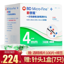 新优锐BD 针头 一次性胰岛素注射笔针头4mm*98支 胰岛素针头 1盒装+酒精棉片100片