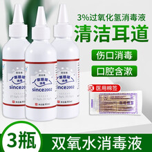 医用双氧水伤口消毒液消毒水洗耳朵滴耳液漱口水3%过氧化氢溶液皮肤消毒甲紫溶液紫药水染发外用破损包退换 【80ml双氧水】3瓶+棉签