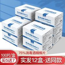 蓝洛 75%医用酒精棉片乙醇消毒湿巾 医用级皮肤消毒棉片 家庭一次性清洁护理独立包装 【买5盒,实发12盒】6x3cm 100片/盒