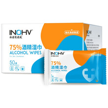 海氏海诺英诺威75%酒精湿巾大号一次性消毒棉片便携免手洗擦手巾 1盒【共50片】