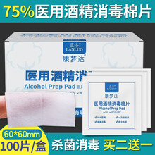 蓝洛 医用酒精棉片消毒棉片 大号酒精消毒湿巾含75%酒精单片独立包装 拍下2盒发3盒)100片/盒(6*6cm)