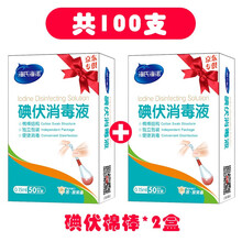 海氏海诺 75%酒精碘伏消毒液棉签棉棒 一次性酒精棉球婴儿肚脐碘酒棉签便携家用 碘伏棉签100支