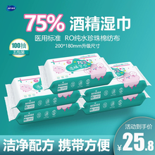 海氏海诺75%酒精湿巾消毒酒精棉片升级款便携包装/独立包装大号尺寸医用级免洗消毒湿巾湿纸巾医用标准 医用酒精湿巾200*180mm-非独立包装-5包