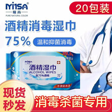 咪尚75%医用酒精湿巾75度酒精棉片消毒湿巾纸杀菌免洗手50抽/包 20包装