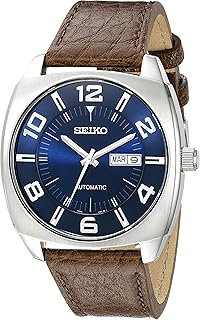 Seiko 精工,男士SNKN37不锈钢自动上发条手表,带有棕色皮革表带