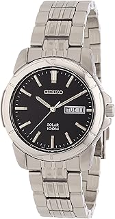 Seiko 精工,SEIKO 男式 silvertone 黑色表盘太阳能日历手表