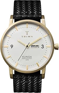 TRIWA,象牙色 Klinga 中性日光和日期手表拉丝金色黑色皮革表带 KLST103 GC010113