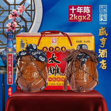 咸亨酒店十年陈太雕黄酒2kgx2坛礼盒箱装绍兴黄酒半甜型糯米黄酒