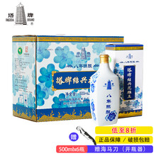 【京东速递】塔牌绍兴黄酒 陈花雕酒半干型手工糯米酒 500ml*6瓶 八年整箱装