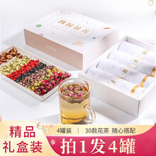 中广德盛胎菊花茶茉莉花茶玫瑰花茶柠檬片苦荞茶大麦金银花养颜花草茶花茶组合 精品轻奢:可选4罐 花茶礼盒 (需在订单备注品种)