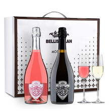 【配2香槟杯】贝丽斯桃红起泡酒 莫斯卡托甜白葡萄酒女士钟爱气泡酒红酒果酒晚安酒商务宴请婚礼用酒 骑士单支+桃红单支礼盒装2*750ml
