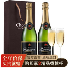 【配2香槟杯】法国原瓶进口起泡酒 安德鲁甜白葡萄酒气泡酒晚安酒女士钟爱甜酒果酒红酒商务宴会婚礼用酒 双支礼袋装2*750ml+配2香槟杯