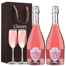 【配2香槟杯】贝丽斯桃红起泡酒 莫斯卡托甜白葡萄酒女士钟爱气泡酒红酒果酒晚安酒商务宴请婚礼用酒 双支礼袋装2*750ml