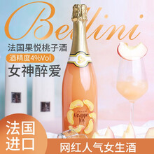 法国原瓶进口Grappe Joy果悦桃子酒 荔枝黑加仑果酒起泡酒鸡尾葡萄酒甜酒 750m果悦桃子味*1支