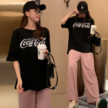 凯琳卡洛儿 孕妇装套装夏季夏款孕妇套装孕妇两件套外出外穿宽松大码孕妈装 黑色+灰色裤子 M