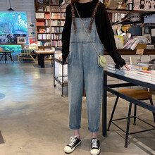 敏潮格伦孕妇秋装套装外出时尚款韩版宽松显瘦T+牛仔背带裤个性潮妈两件套 单背带裤 M