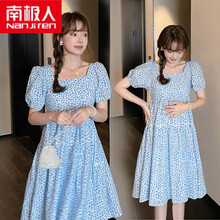 南极人高档轻奢优雅气质孕妇女装新品孕妇装夏天裙子洋气桔梗法式泡泡袖宽松可盐可甜不显怀潮妈连衣裙 蓝色 M