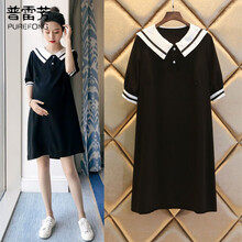 普雷芳孕妇装夏装2021新款时尚潮妈外出哺乳衣宽松大码学院风夏季短袖孕妇连衣裙夏款 黑色(孕妇款) M