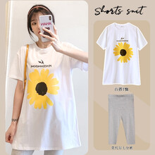 卓贝欣孕妇装夏套装2021网红小雏菊印花T恤短袖上衣孕妇裤两件套潮妈 白色上衣 M