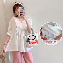 珺瑞禾 孕妇装夏套装外出时尚新款2021雪纺娃娃衫上衣潮妈网红夏季两件套 白色上衣 M(建议体重90-110斤)