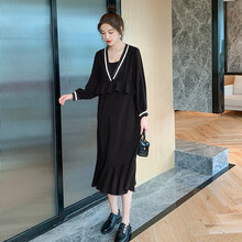 敏潮格伦孕妇连衣裙春秋潮妈时尚洋气减龄网红孕期气质宽松长袖鱼尾裙子夏季短袖 黑色长袖 M