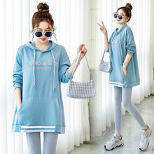 孕妇装春秋装2021新款套装外出时尚款卫衣春秋款春款上衣潮妈个性T恤女 蓝色上衣 M【建议90-115斤】