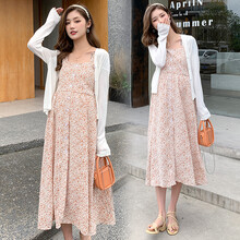 凯琳卡洛儿 孕妇装套装夏季夏款孕妇套装孕妇碎花吊带两件套外出外穿宽松大码孕妈装 单件橘色吊带裙 M