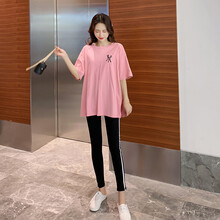 风海有夏孕妇夏装套装时尚款孕妇装短袖恤上衣潮妈外出两件套春夏薄款棉夏季休闲运动衣服 粉色上衣+黑裤【套装】 M