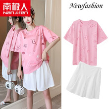 南极人高档轻奢优雅气质孕妇女装新品孕妇装夏套装外出夏季时尚款潮妈新款夏天网红雪纺短裤夏款两件套 粉色+白裤套装140 M