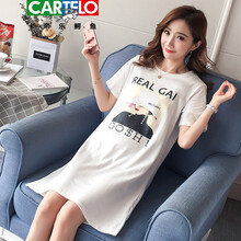 ℘卡帝乐鳄鱼ℑ轻奢高档品牌 孕妇装夏装时尚中长款纯棉连衣裙2021新款潮妈大码宽松短袖裙气质显瘦 白色 M