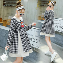 孕妇装春秋装2021新款洋气春装连衣裙女时尚款春秋季网红潮妈裙子长袖上衣中长款 黑色裙子 M【建议90-115斤】